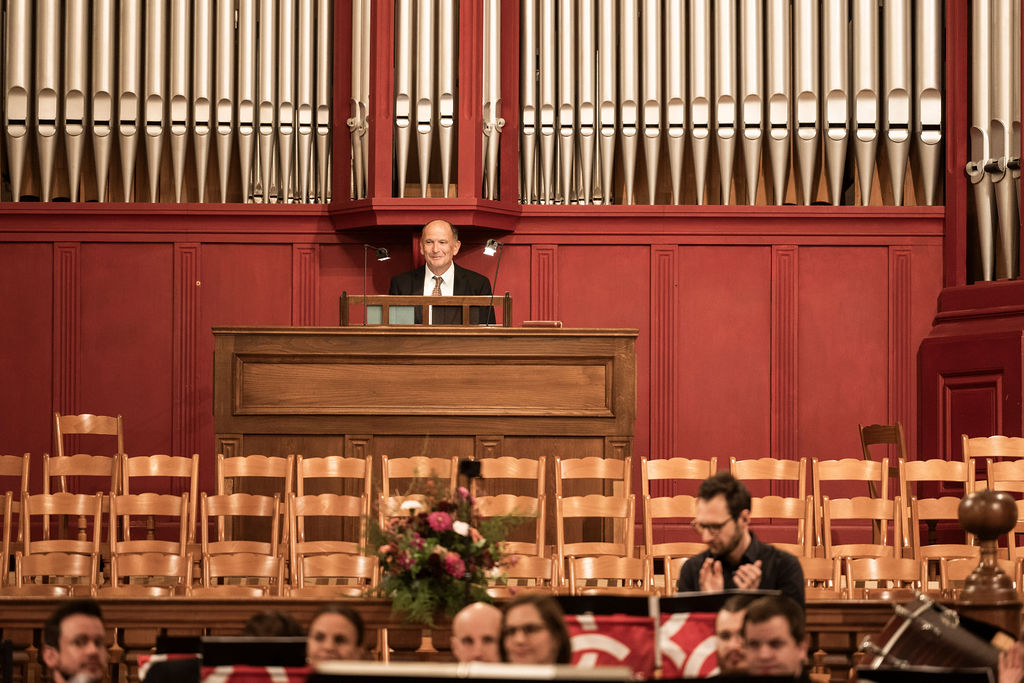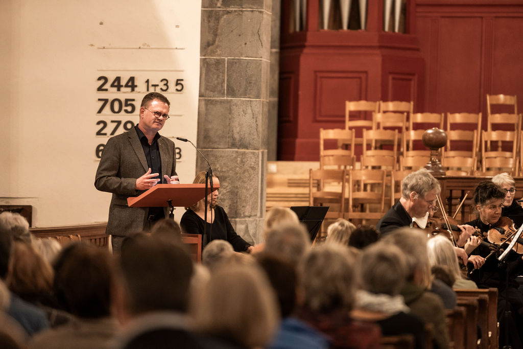 Der zweite Programmpunkt stand ganz im Zeichen des Wunsches nach Frieden. Christian Sprecher trug die von Robert Naefgen ausgewählten Texte eindrücklich und mitreissend vor. Seine kraftvolle Darbietung berührte das Publikum.