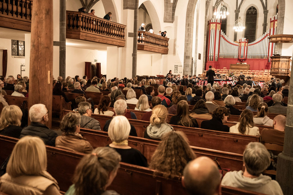 Den Abschluss des Tages bildete ein fulminantes Programm mit der Brass Band Cazis und Andrea Kuratle an der Orgel – inklusive einer Uraufführung, die dem Konzert eine besondere Note verlieh.