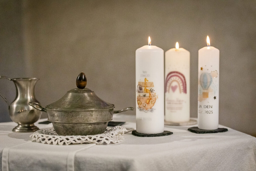 Meist werden Kinder im Säuglingsalter getauft. Wenn Eltern mit der Taufe des neugeborenen Kindes jedoch noch zuwarten möchten, können sie ihr Kind auch im Gottesdienst segnen lassen. Auch wenn Sie besondere Bedürfnisse haben (z.B. Taufe im Erwachsenenalter, Taufe in angepasster Form bei Krankheit oder körperlicher/geistiger Beeinträchtigung) besprechen wir gerne mit Ihnen die Möglichkeiten.
